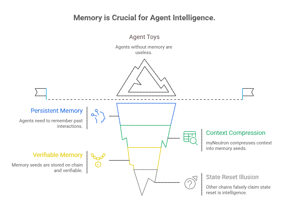 Постоянная родная память — это не приятная функция. Без нее агенты — игрушки. Vanar решает эту проблему с помощью myNeutron, который сжимает контекст в легкие проверяемые семена памяти в цепочке. Агент помнит, кто вы, что произошло раньше и почему были приняты решения.