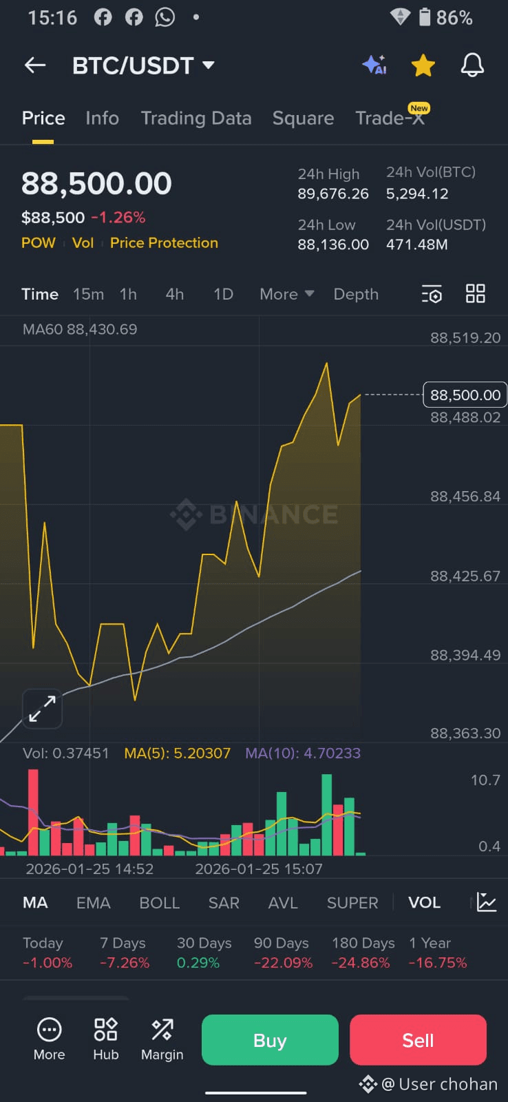 BTC’s price remains 29–30% below its October 2025 all-time high ($126,000). �