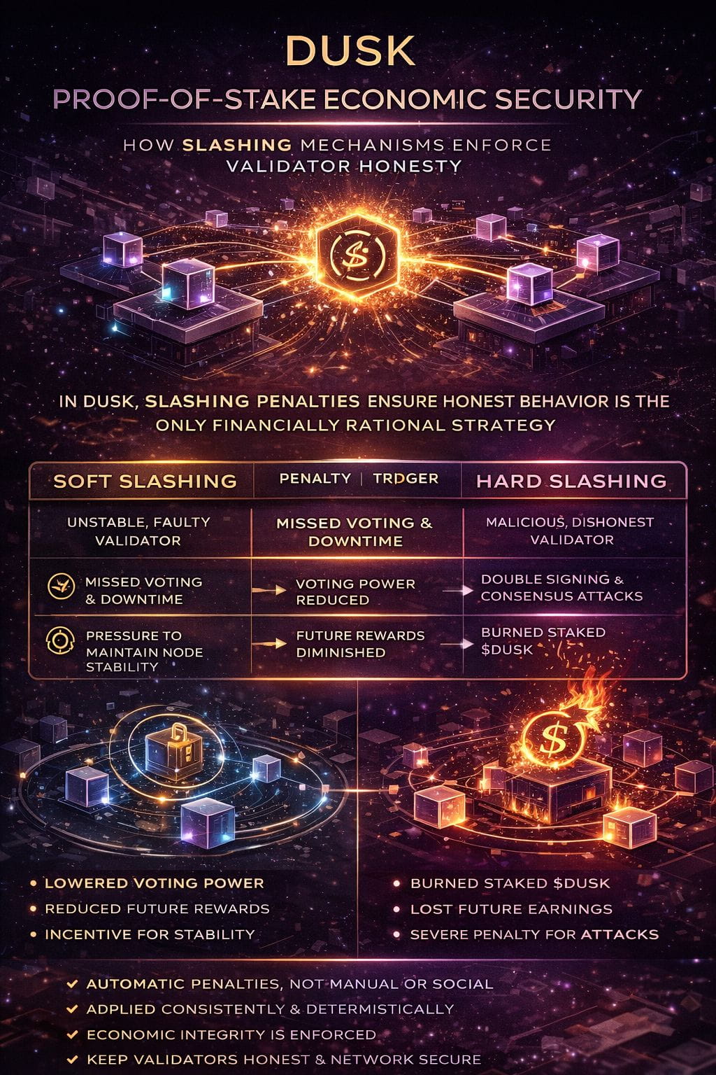 У Proof-of-Stake доверие никогда не существует само по себе. Оно не основывается на репутации, намерениях или моральных качествах участников. В PoS доверие всегда измеряется деньгами. Именно поэтому механизм slashing является не вспомогательным инструментом, а фундаментом безопасности любой сети, которая претендует на серьезное финансовое использование. В Dusk этот фундамент построен максимально прямо: честное поведение должно быть единственной экономически рациональной стратегией.