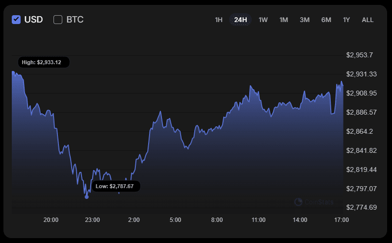Ethereum торгуется по цене $2,940 на момент публикации.