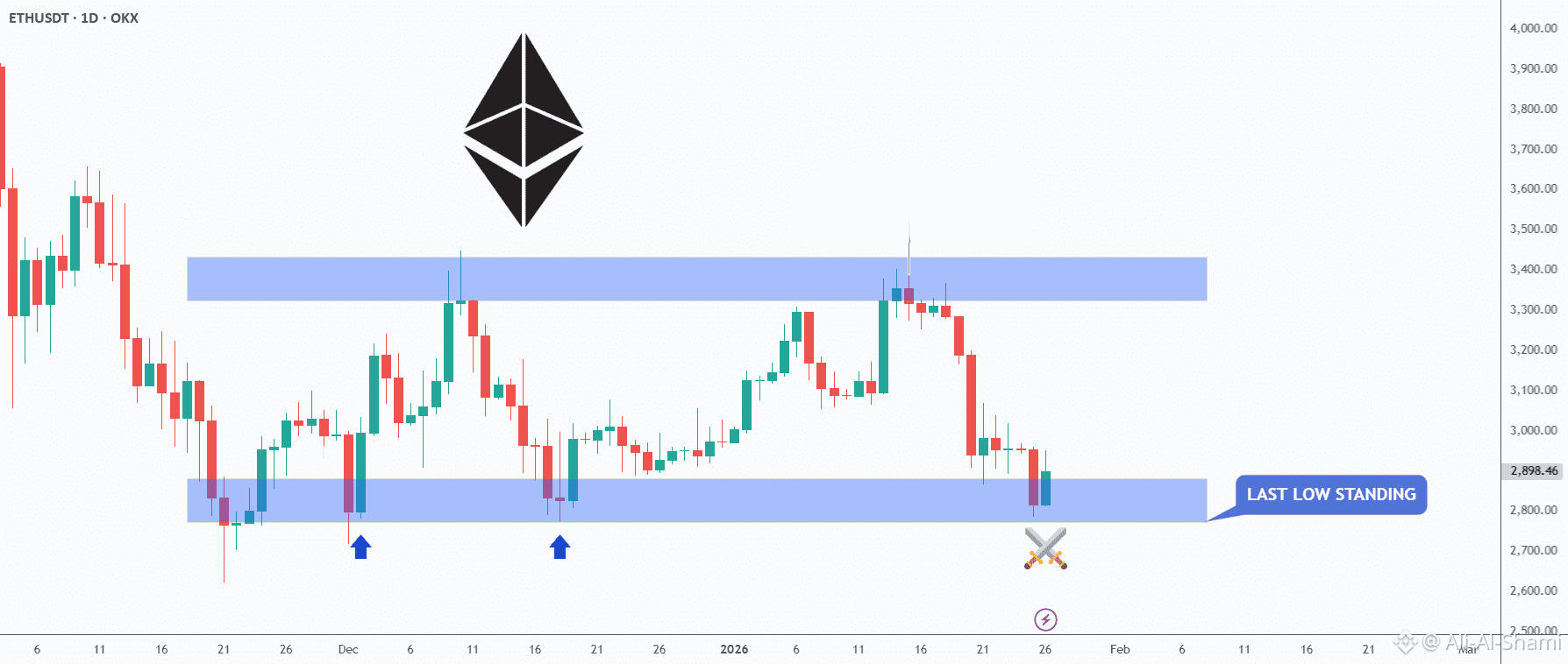 الإيثريوم الآن في حدود الحد الأدنى من نطاقه، وهذا ليس مجرد دعم عادي.