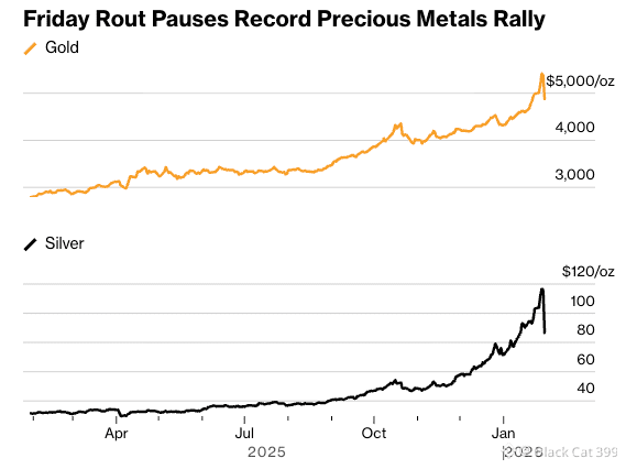Kim Loại Quý vừa hứng chịu sự kiện Thiên Nga Đen thảm khốc. Sau khi Tổng thống Chump đề cử Kevin Warsh làm Chủ tịch Fed, Bạc đã sập kỷ lục 36% và Vàng lao dốc 12%.