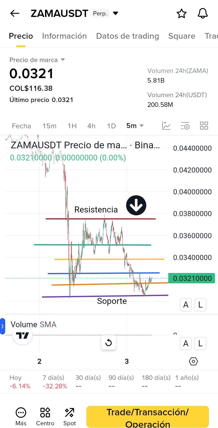 Теперь график, который я смотрю (постоянный ZAMA/USDT на 5 минут):