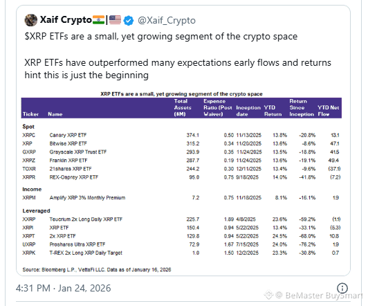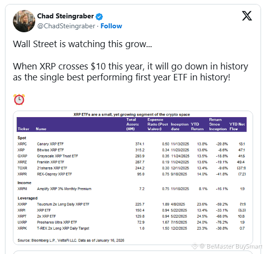 $XRP Chad Steingraber, a well-known market commentator, recently drew attention to the rapid growth of XRP ETFs. He noted that “Wall Street is watching this grow,” signaling that institutional investors are closely tracking the developments in the XRP market.
