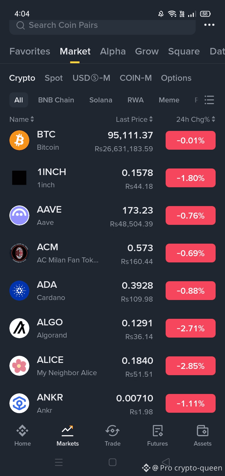 Everyone's losing money today. Almost every coin is down. Red everywhere you look. This is brutal.