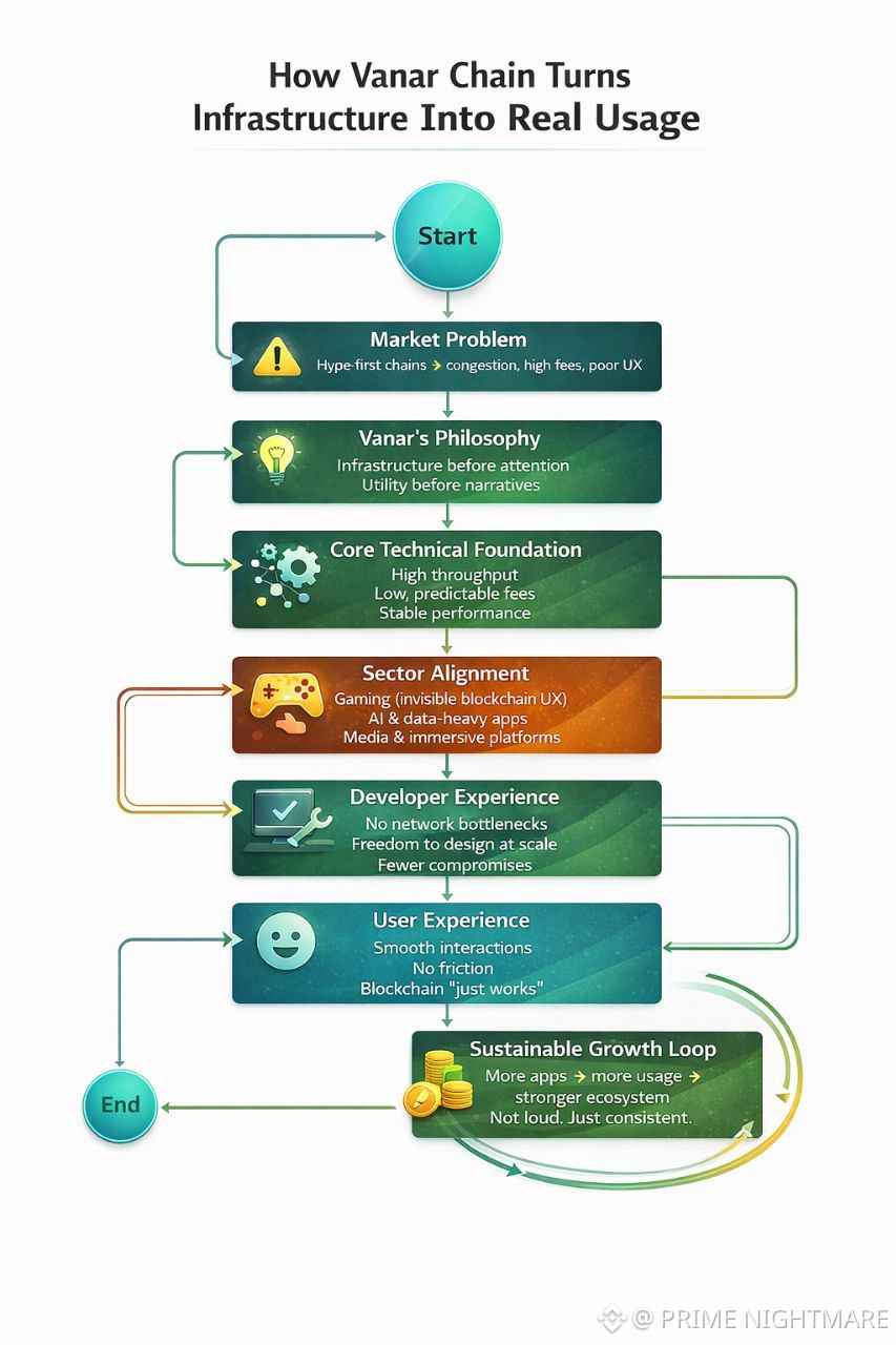 Gaming, in particular, feels like a natural fit. On Vanar blockchain isnt treated as a gimmick layered on top of gameplay. Instead its positioned as invisible infrastructure that enables ownership, in game economiesand digital assets without slowing the experience down. For players, that means strangle interactions. For developers, it means freedom to design without constantly panic about network limitations.The same logic applies to AI and data heavy applications. As decentralized systems start to interact more closely with AI models blockchains must handle frequent transactions efficiently. Vanars architecture seems built with this future in mind not just for demos, but for sustained usage.The $VANRY token plays an important role here. Rather than being marketed purely as a speculative asset, it’s designed around network utility and ecosystem participation. As more applications deploy and usage grows ,VANRY becomes increasingly connected to actual on-chain activity. That kind of alignment matters if a project wants long-term credibility.