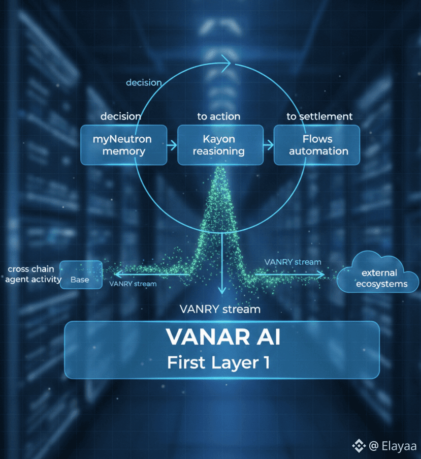 Together these components behave less like tools and more like an intelligence layer embedded into the chain itself. Memory feeds reasoning. Reasoning shapes action. Action triggers settlement. The loop closes internally more often than not.