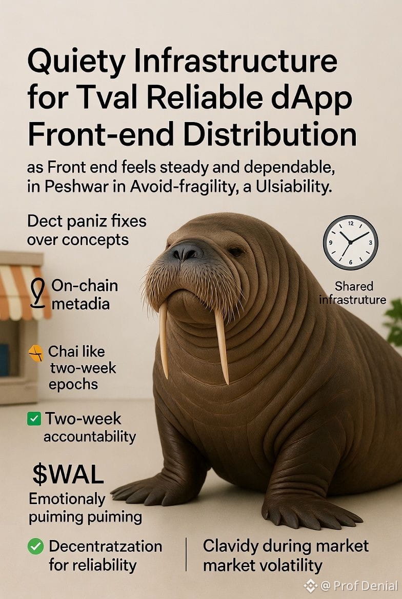 Come closer, friend let me explain this face-to-face like we’re having chai in Peshawar. When people talk about “front-end distribution” in the Walrus world, they’re rarely talking about something cosmetic. They’re talking about the part of an app that users actually touch when they’re scared, impatient, angry, or just trying to get something done before the window closes. In those moments, the front end stops being a design choice and turns into a trust boundary. If it fails, users don’t experience an “outage.” They experience a personal loss of control. Walrus treats that reality with an unusual seriousness: it makes the front end feel less like a fragile storefront and more like a piece of shared infrastructure that can survive the messy parts of human behavior and the internet.