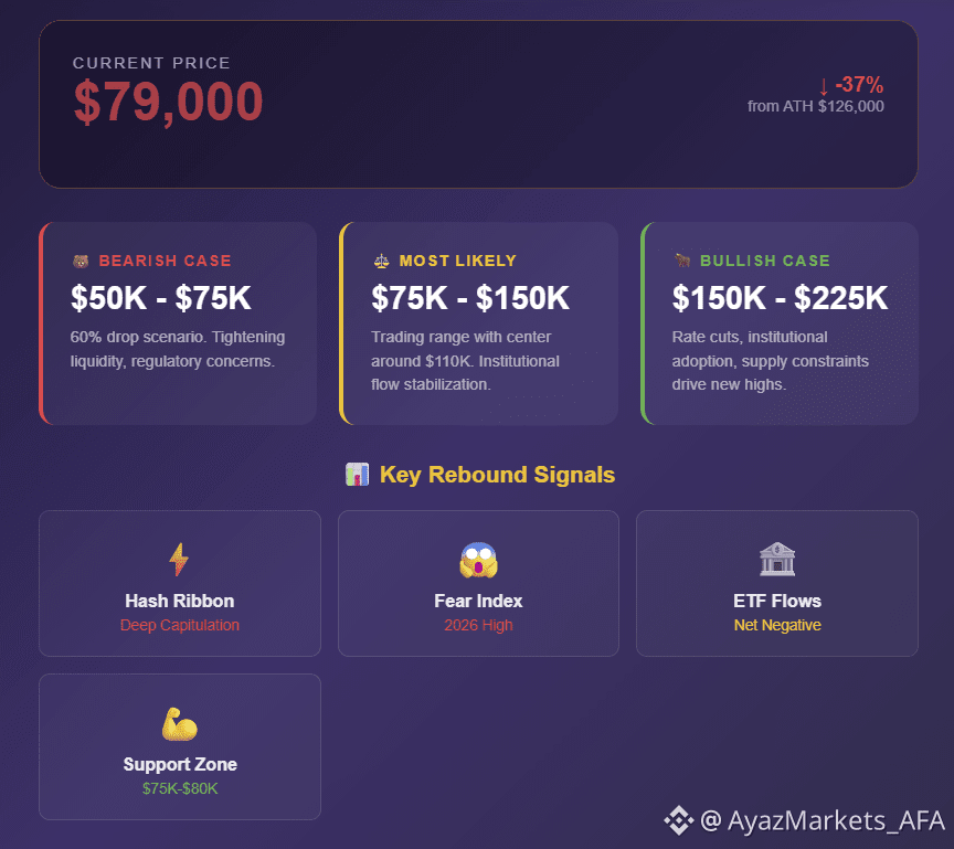 $BTC fell from $126,000 in October 2025 to roughly $79,000 today—a 37% drop. Spot Bitcoin ETFs saw negative flows this week, and leverage is unwinding across derivatives markets.