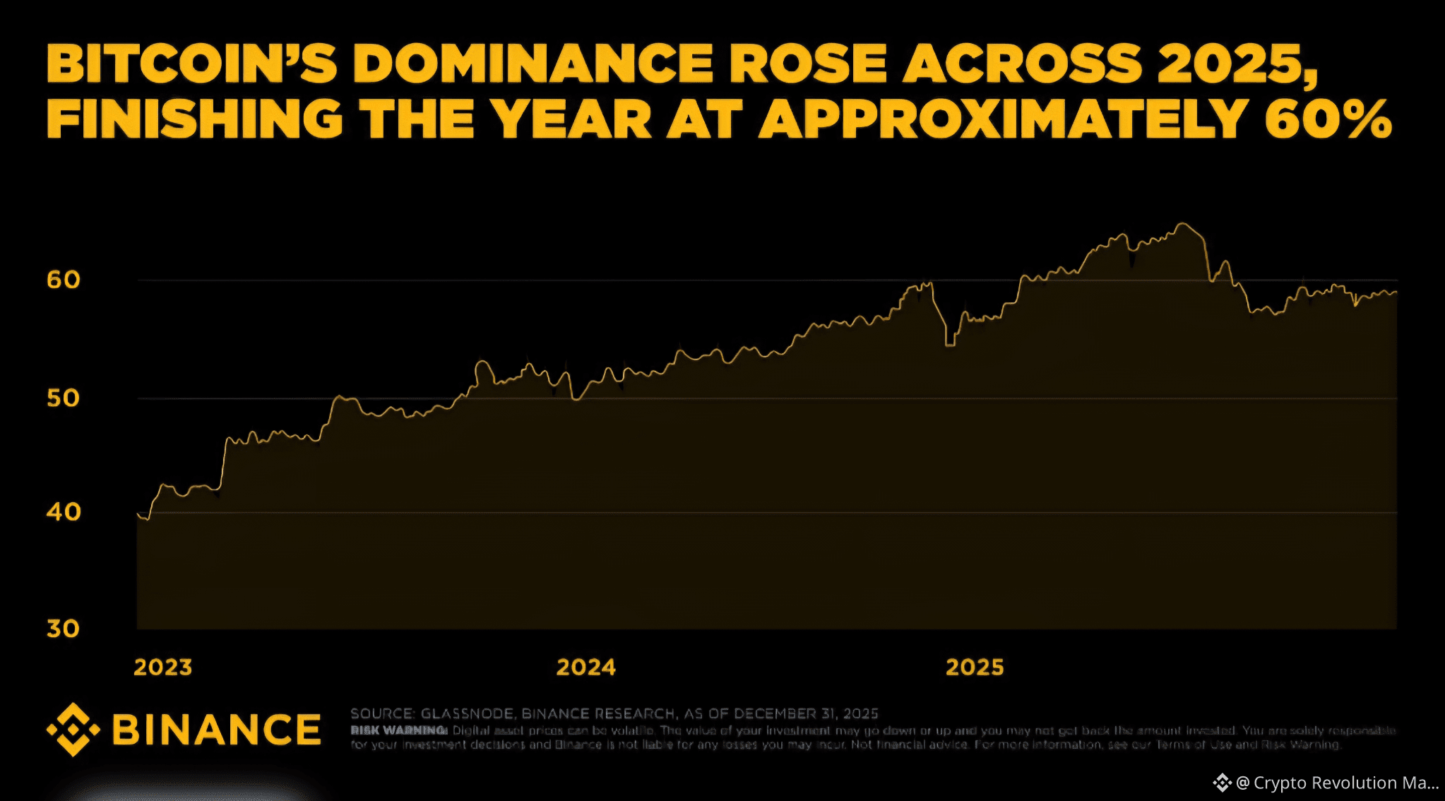 The data backs that up. Bitcoin held around 58–60% dominance all year, ETF inflows crossed $21B, and corporate andinstitutional holdings passed 1.1M BTC. Liquidity and velocity moved off-chain into ETFs and custody, while BTC increasingly functioned as sovereign-grade collateral. That’s a big shift.