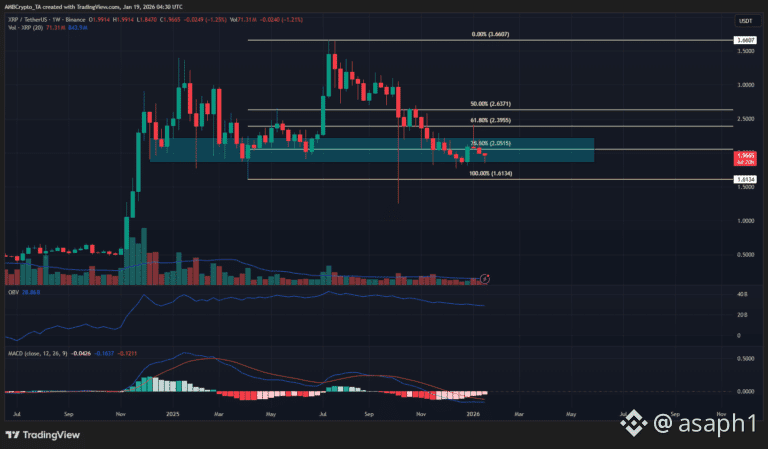 Pero ojo, que aquí es donde se separan los novatos de los que saben leer el juego. Estamos sentados justo en una "zona de demanda" clave (entre los $1.81 y $2.00). Esta es la zona que los compradores más fuertes han defendido desde finales de 2024. Si el precio aguanta aquí, estas liquidaciones masivas podrían haber limpiado el mercado de "manos débiles", dejando la pista libre para un rebote hacia los $2.30 o incluso $2.60. 🚀
