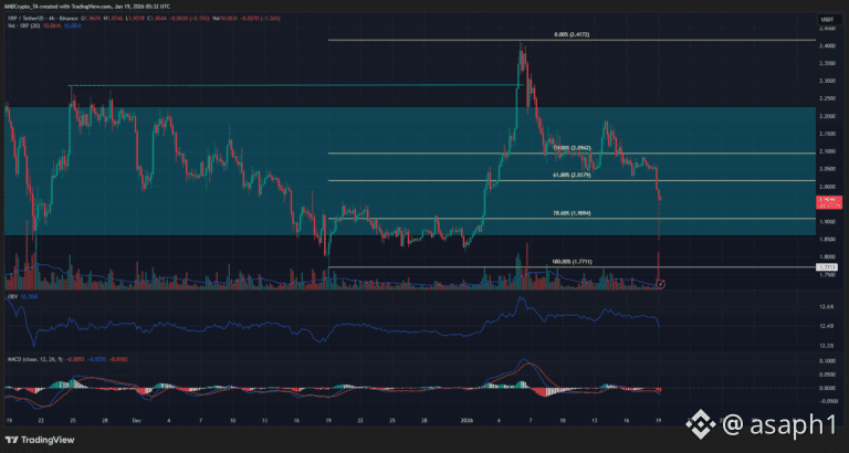 El Soporte Crítico: Si XRP cierra por debajo de los $1.77, la cosa se pone fea y los toros estarían en problemas serios. ⚠️