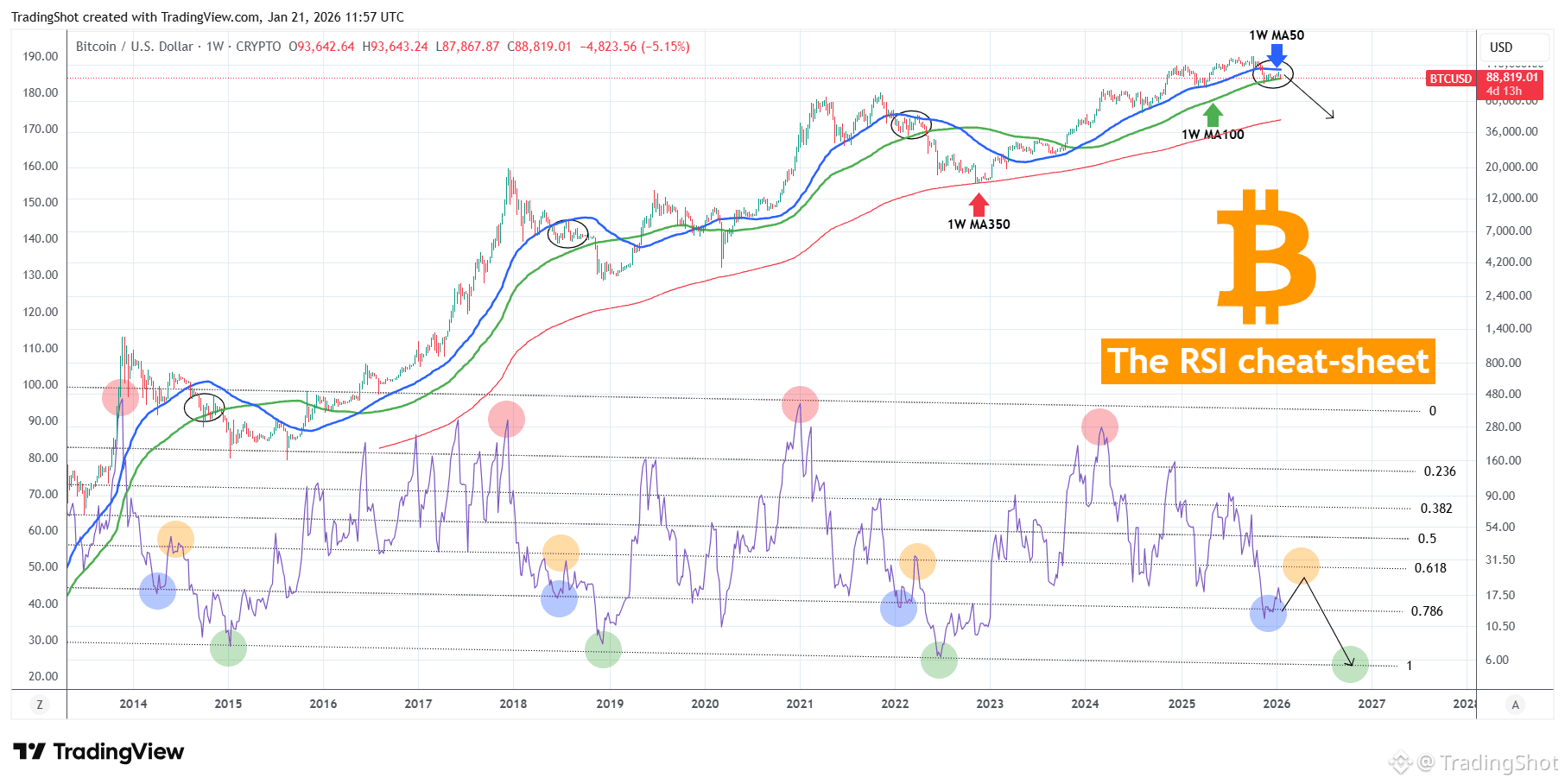 As you can see, the 1W RSI has bounced on its 0.786 Fibonacci level, a trend-line where it always hits and rebounds historically (blue circles) before completing Stage 1 of the Bear Cycle. In the previous two Bear Cycles, this has coincided with the 1W MA50-100 consolidation. After that, the RSI rebounded and tested the 0.618 Fib (orange circles), which again in the last two Cycles coincided with a 1W MA50 test, and got rejected (initiating Stage 2) towards the bottom of the Channel for the eventual Cycle bottom (green circles).