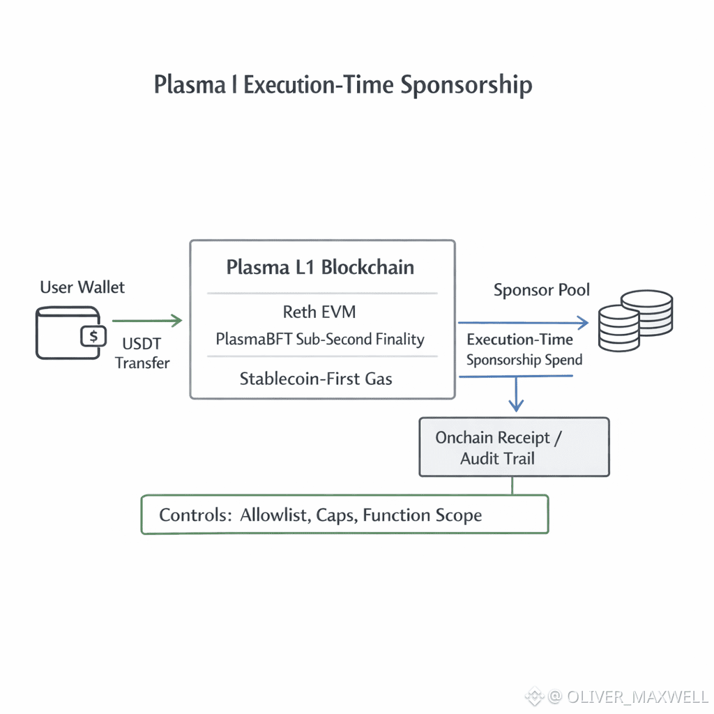 When sponsorship is charged at execution on Plasma, subsidies behave like settled receipts that clear as each USDT transfer finalizes. Sponsors can compete on how efficiently they can fund real USDT movement, and users can judge reliability by whether sponsorship policies remain stable under load. On Plasma, a subsidy is a receipt written at execution, which keeps gasless USDT settlement a controllable expense rather than an offchain promise.