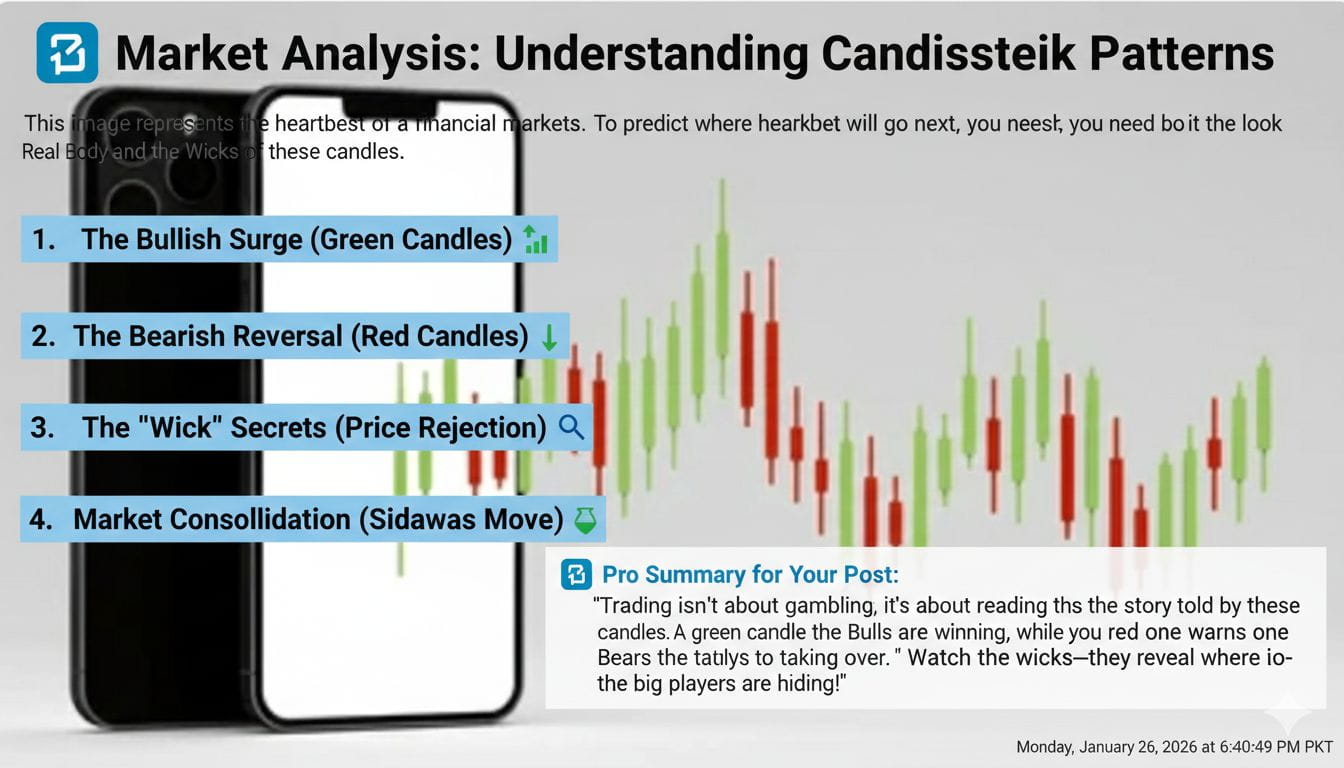This image represents the heartbeat of the financial markets. To predict where the market will go next, you need to look at the Real Body and the Wicks of these candles.