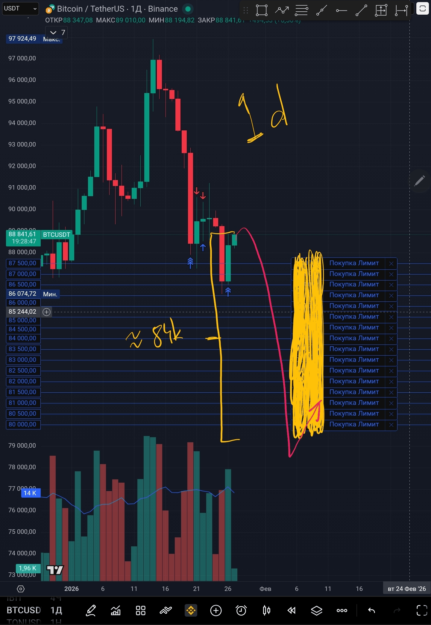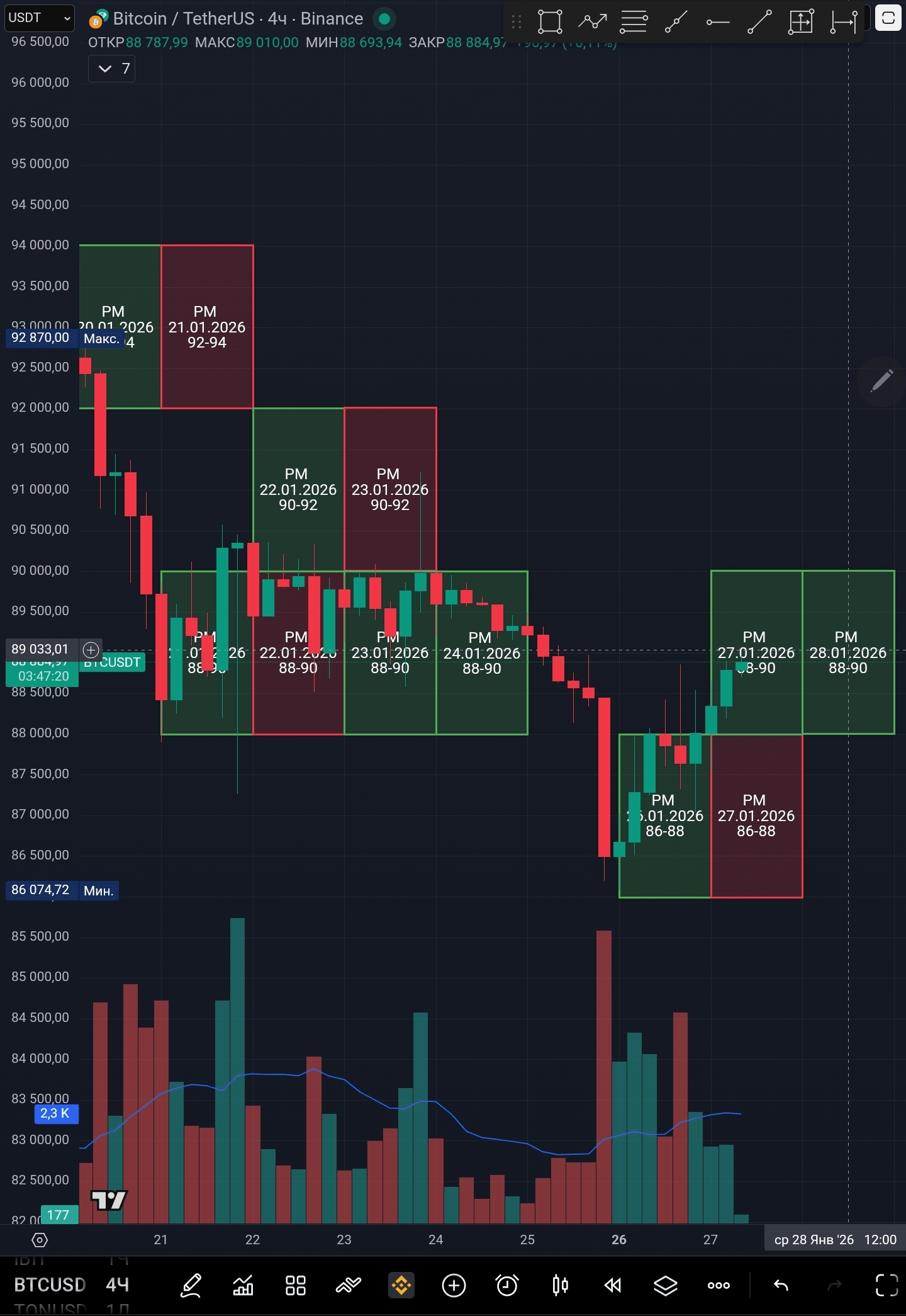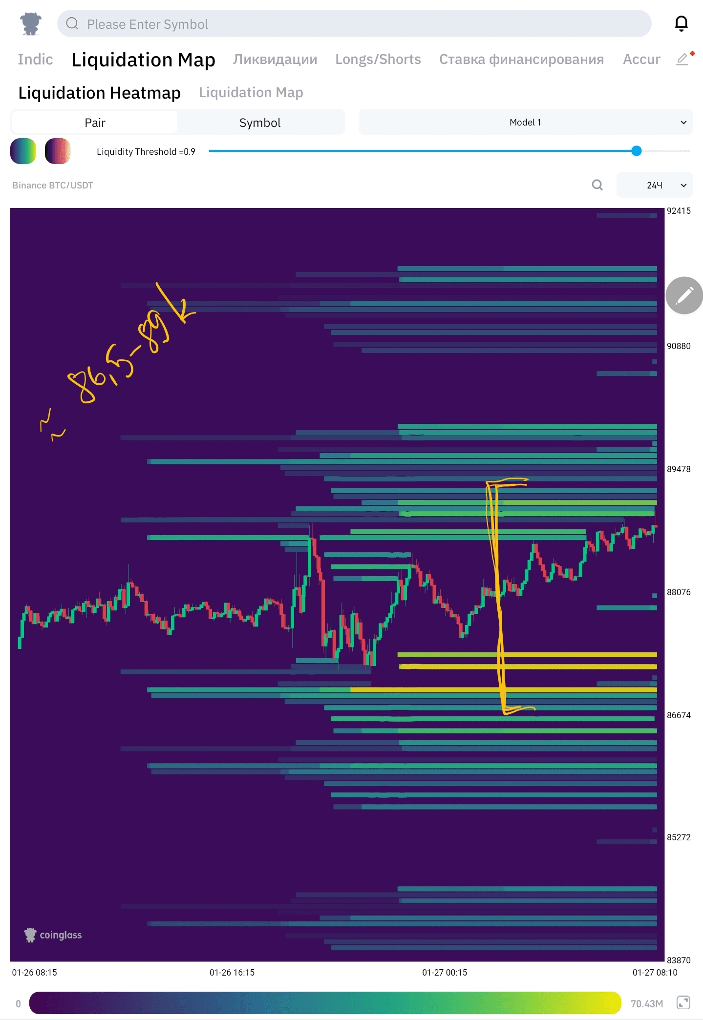 📍 Тепловая карта нам даёт примерный диапазон цен 86.5-89k