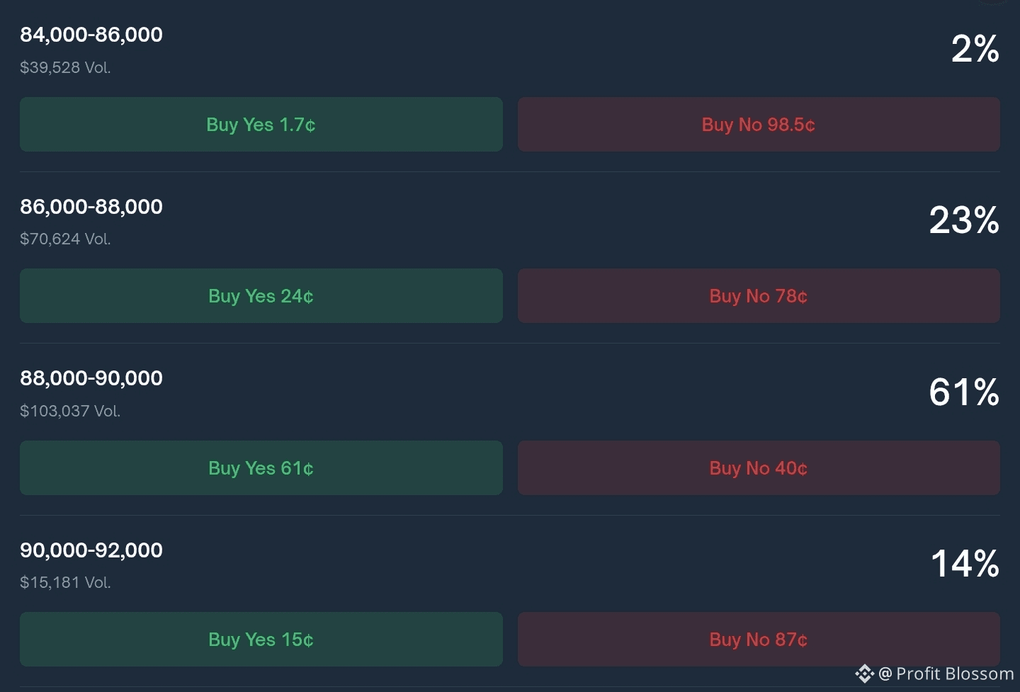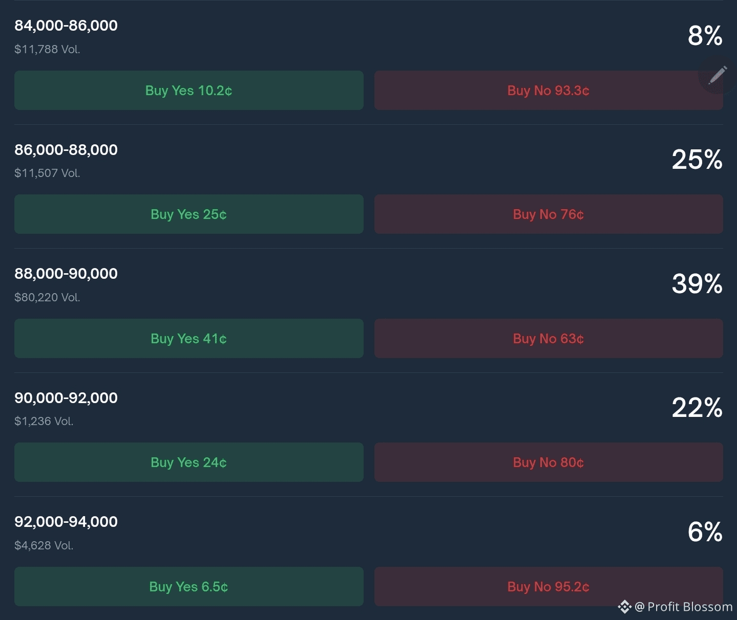📍Прогноз большинства в Polymarket на сегодняшний и на завтрашний день даёт нам наиболее вероятный разброс цен 88-90k