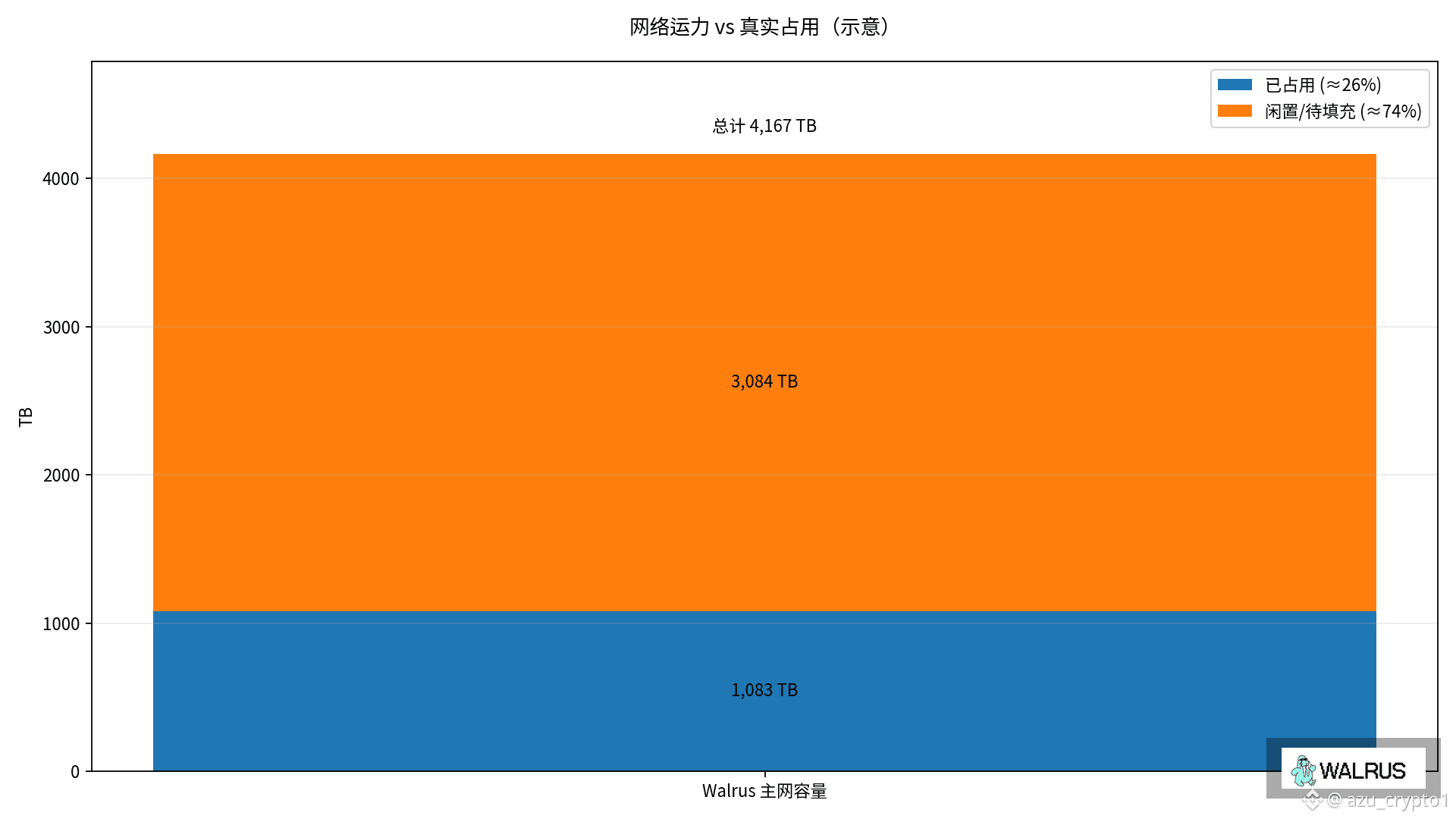那现在这门生意跑得怎么样?Blockworks 去年年底有一篇报道,给了几个很关键的现状数字:Walrus 主网上的总存储容量大概 4,167TB,其中约 26% 已经被真实数据占用,网络上有 103 个运营方,合计 121 个存储节点。如果你对 DePIN 这条线有点感觉,就会明白这意味着什么:这不再是早期那种只有几台“自家节点”撑门面、靠补贴烧快照的状态,而已经是一个有一定规模运力、同时存在明显闲置容量、等待需求填充的网络。站在 WAL 的视角,你看到的是一条“TB×时间”的长曲线,曲线下面积越大,被时间切开的那一串现金流就越厚;站在节点视角,你看到的是一张“要不要押注在 Walrus 上继续加仓”的 P&L 表;站在持币人的视角,你看到的是“补贴池消耗速度、真实存储费占比、惩罚和销毁记录”这些变量。