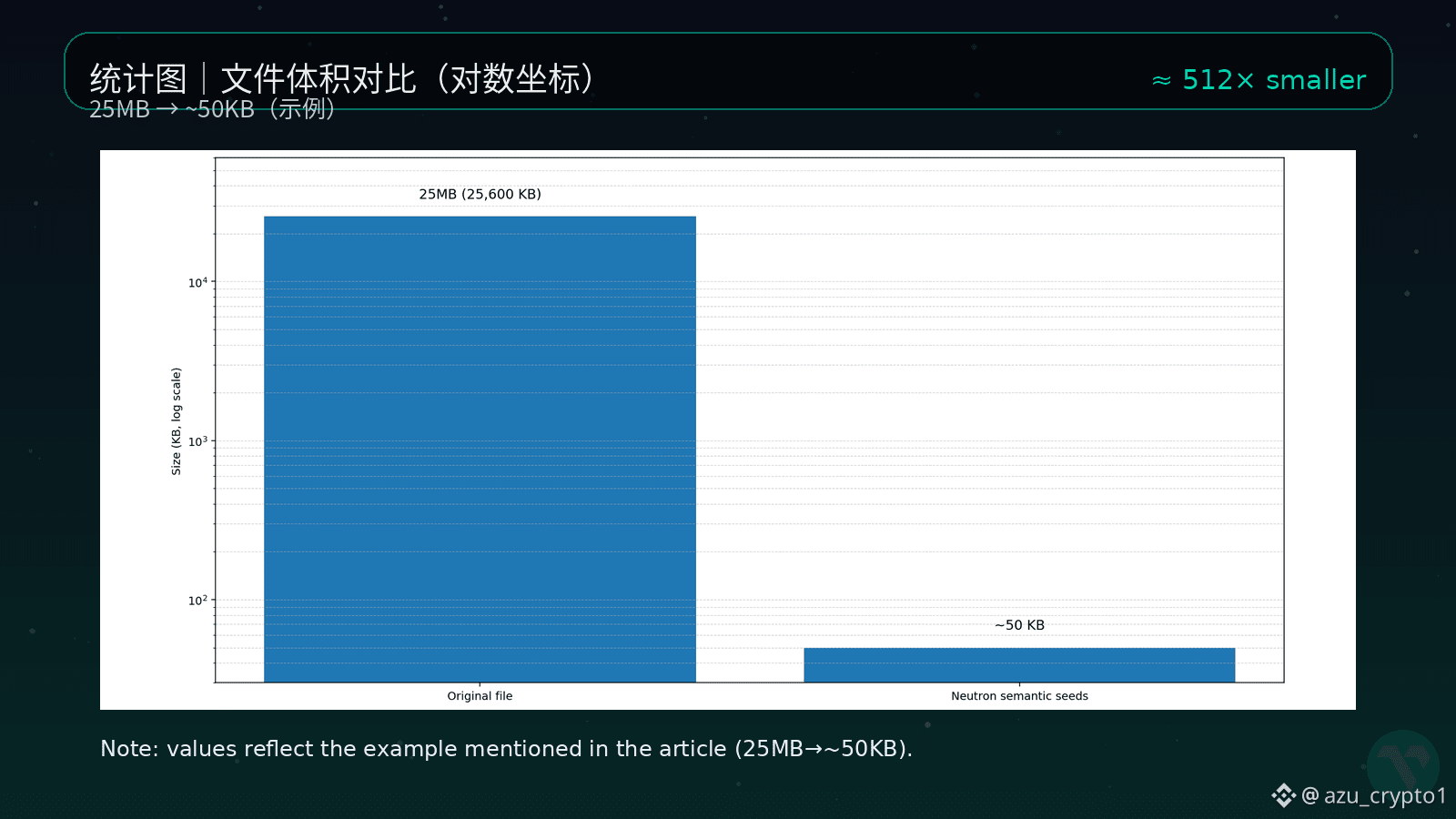 在 Neutron 的世界里,文件不再只是“一个链接”“一个哈希”,而是一整片可以被 AI 播种、被应用层反复收割的语义土地。你可以把 Seeds 想象成“文件的灵魂”:肉身在上传和迁移中早就变化无数次,但这些 Seeds 上刻着的,是这份文件真正想表达的东西,而且可以被不同的智能体共享使用。原来 25MB 的大文件,进来之后被压成几十 KB 的 Seeds 集合,这些 Seeds 全部上链,变成一个可以被索引、被证明、被组合的长期记忆。