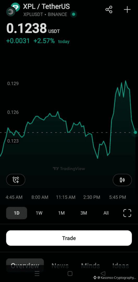 Looking at today XPL/USDT chart, one thing is clear, Plasma is not making noise, but it is moving quietly. The price is sitting around $0.125, and from the chart I shared below, this is not panic selling, it’s more like the market catching its breath.
