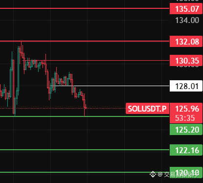 如果夜间上不去128上方,那说明小级别反弹没有力度,再次回踩下方支撑位留意125-122-120这几个位置附近!#solana