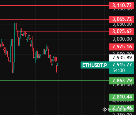 如果夜间上不去2935上方,那说明小级别反弹没有力度,再次回踩下方支撑位留意2863-2810-2773这几个位置附近!#ETH走势分析