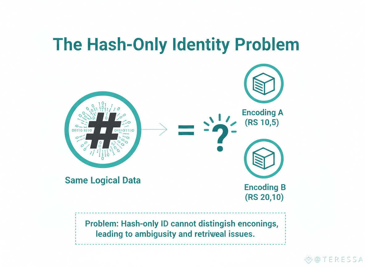 Everyone assumes blob identifiers are simple: hash the data, use that as the ID. Walrus proves that's thinking too small. A blob's true identity includes both the data hash and the encoding metadata. This single design choice enables verification, deduplication, versioning, and Byzantine safety—all simultaneously.