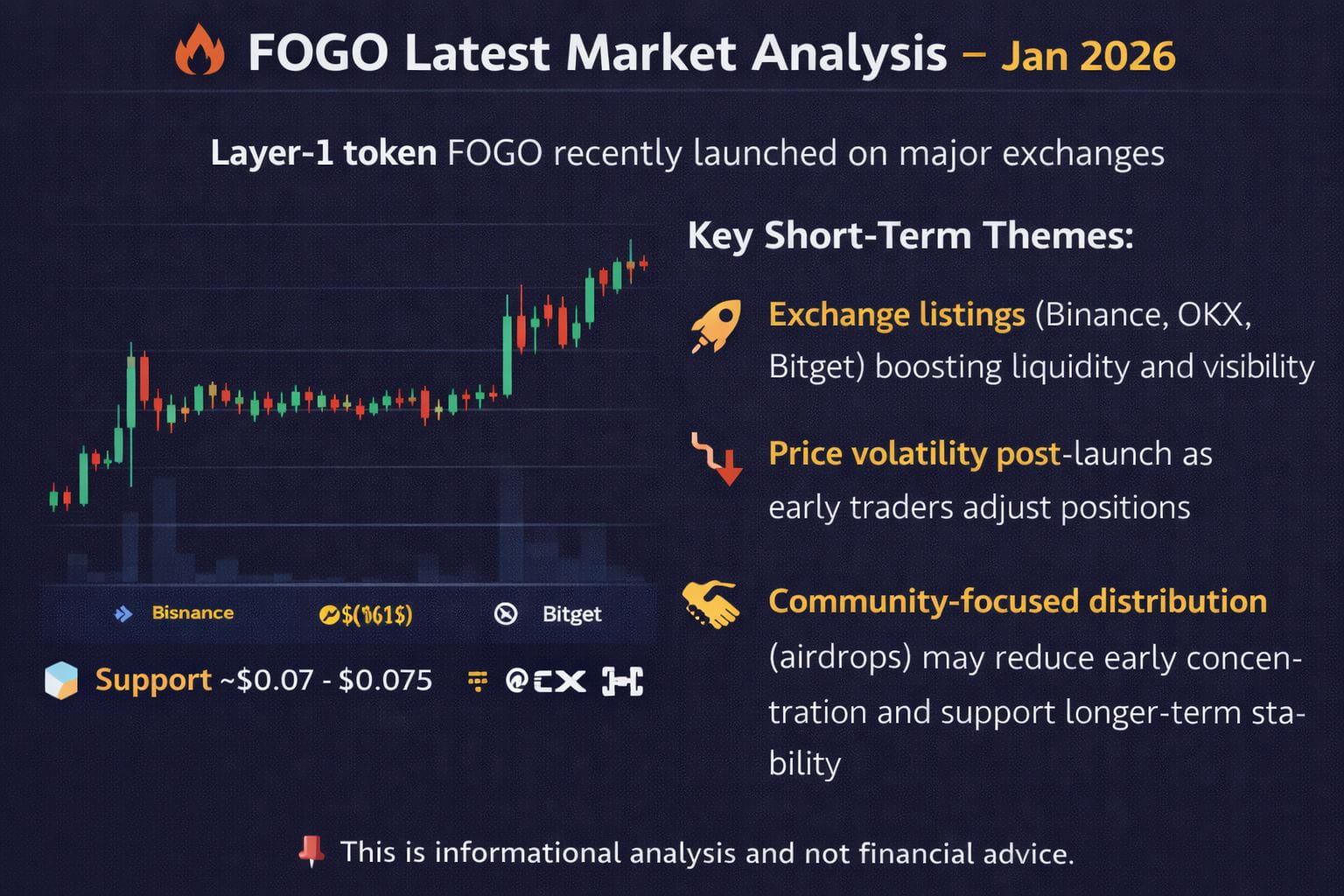 $FOGO FOGO, a next-generation Layer-1 blockchain token, has been in the spotlight following its recent mainnet launch and exchange listings. After debuting on major platforms like Binance and other exchanges in mid-January 2026, $FOGO has seen mixed price action, influenced by early trading volume, liquidity dynamics, and post-listing volatility.