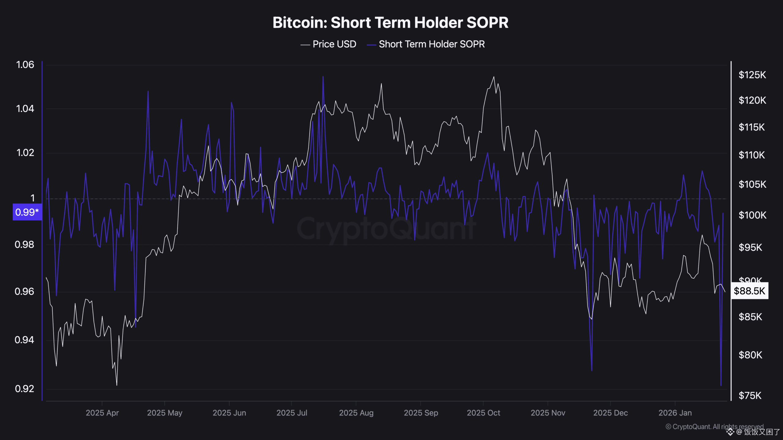 衡量这一点的核心指标是 STH SOPR,它反映了短期持有者在卖出时是盈利还是亏损。