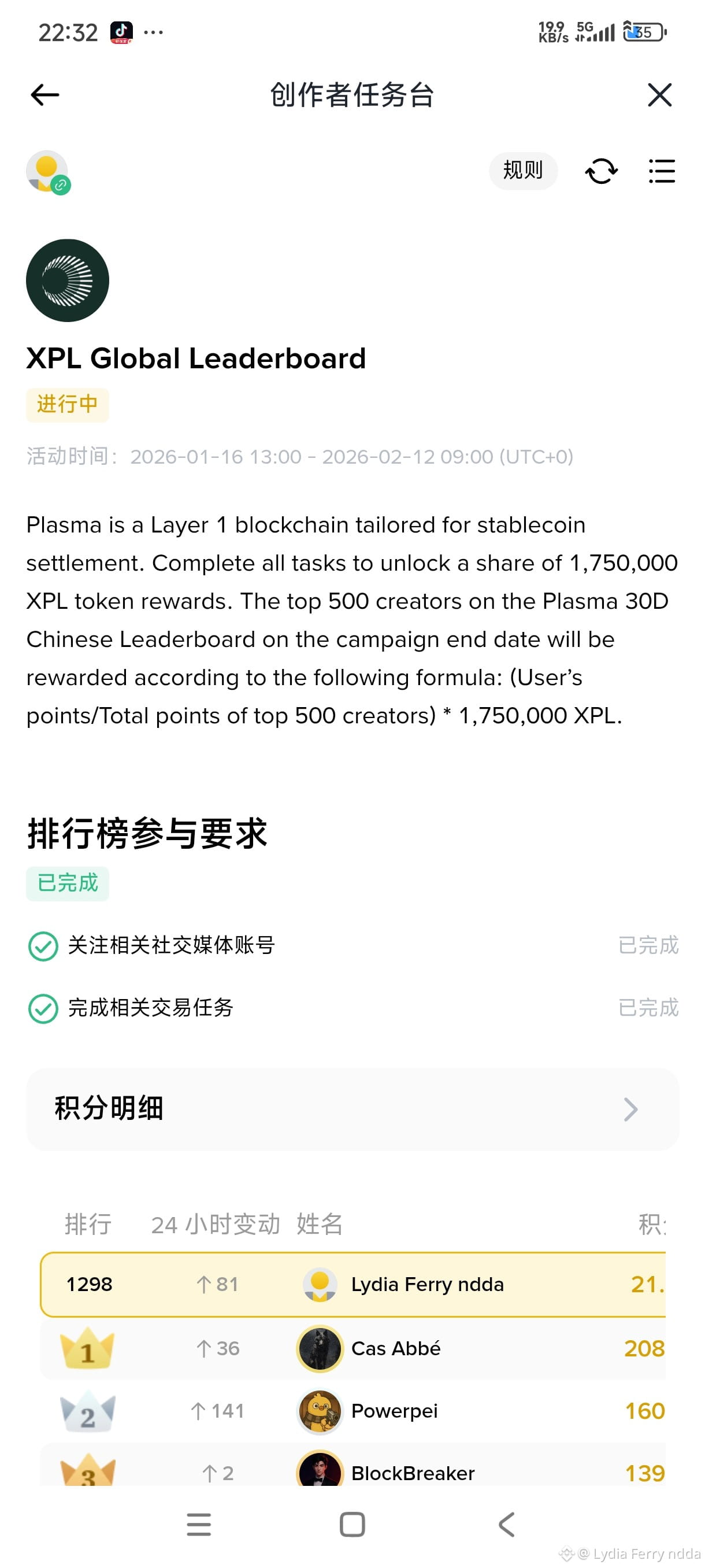 Plasma在CreatorPad的创作者活动排行榜终于揭晓。