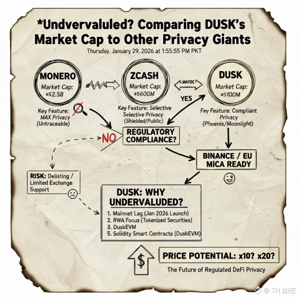 The question for Binance traders is really simple: why is Dusk valued lower than older coins? Dusk is a blockchain that works well. It has smart contracts and it can work with real world assets.. Other older coins do not have these things and they are still worth more. The reason for this is that it takes time for people to understand how useful Dusk really is. People are still guessing about what Dusk's worth. Monero is a way to keep your money private.. It cannot be used for things like a special kind of exchange or, for regulated bonds. Dusk can do these things.
