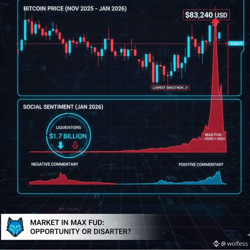 On-chain metrics and sentiment data confirm that negative social commentary has spiked to its highest level in 2026. This isn't just a minor dip—it's a direct reaction to Bitcoin hitting its lowest market value since November 21st, currently testing the $83K - $84K support.
