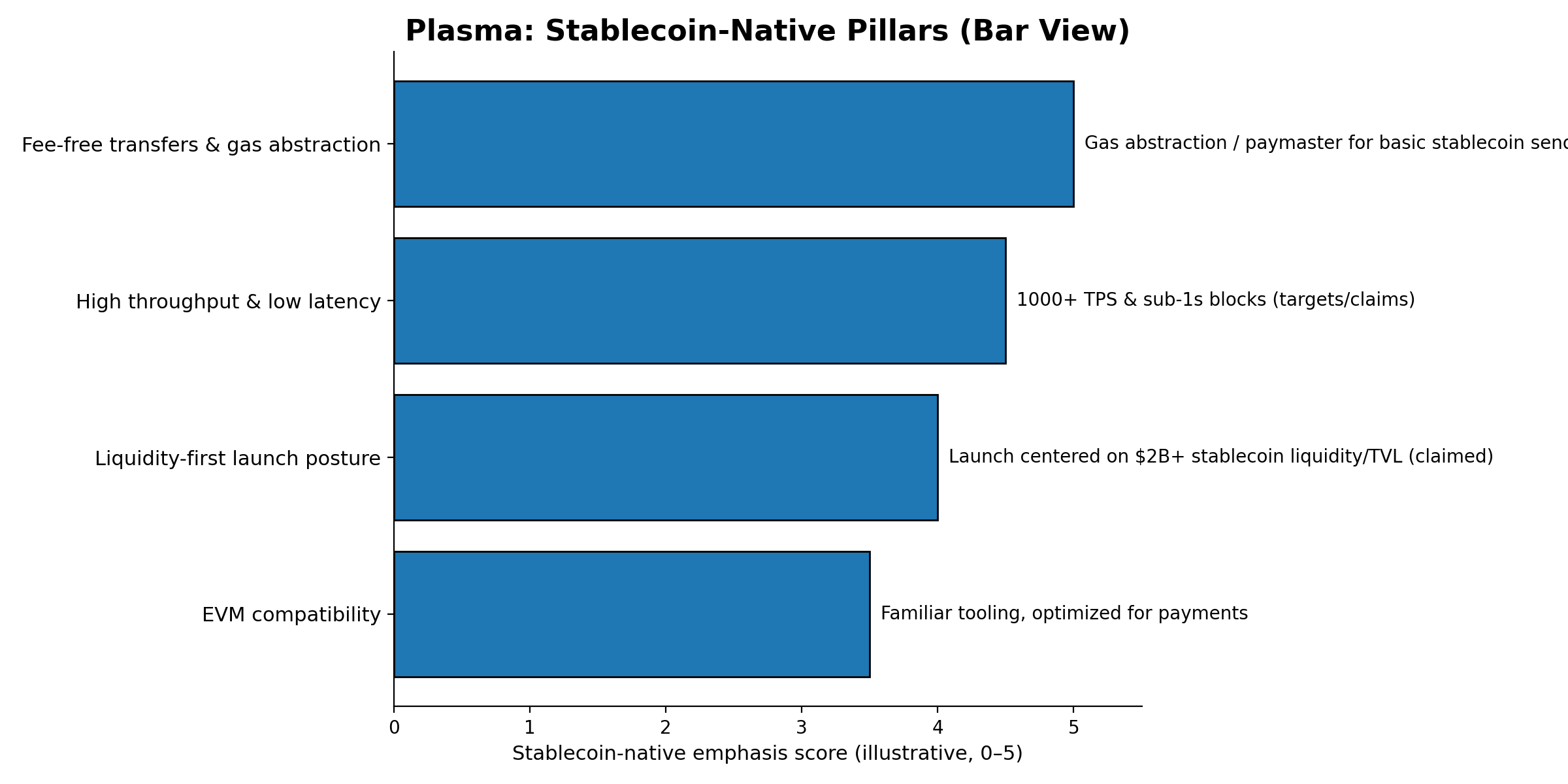 Plasma’s architecture and go-to-market revolve around stablecoins (not a volatile gas token) as the center of gravity: