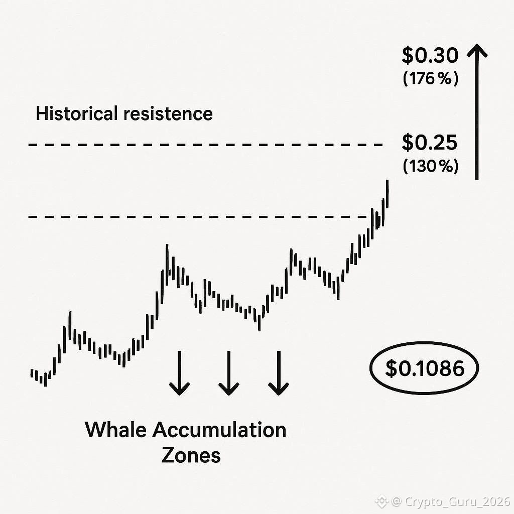 · Whale Accumulation Zones: On-chain data shows concentrated buying between $0.095-$0.11. Whales are establishing this as a base, not a top.