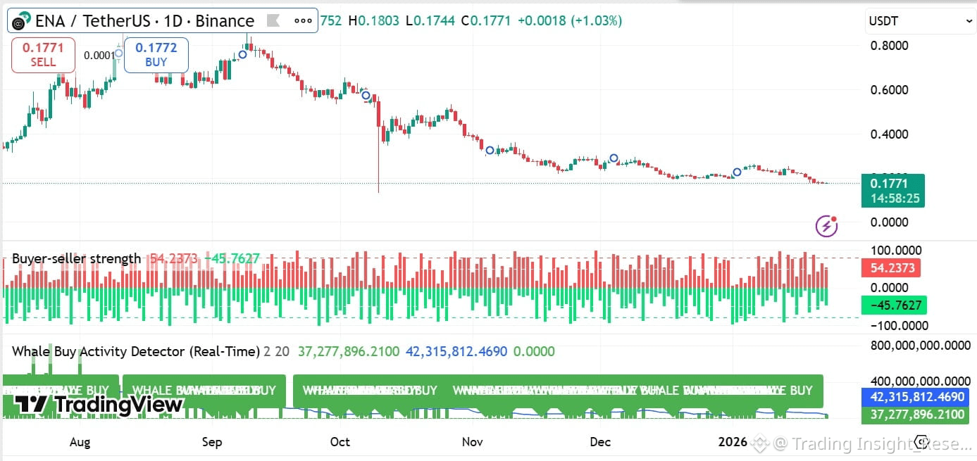 $ENA đang kẹt trong một cuộc chiến khốc liệt. Mặc dù đang giao dịch tại $0.17 và kiểm định lại mức đáy tháng 10, cá voi vẫn đang tích lũy quyết liệt. Tuy nhiên, áp lực bán tháo từ nhỏ lẻ đang đe dọa kéo giá xuống $0.13.