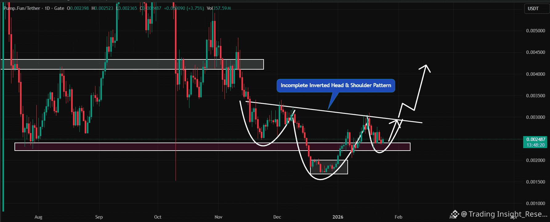 PUMP đang giữ vững hỗ trợ quan trọng tại $0.00242. Nếu mức này được duy trì, mô hình sẽ nhắm tới mục tiêu $0.0033—tương đương mức tăng 30%.