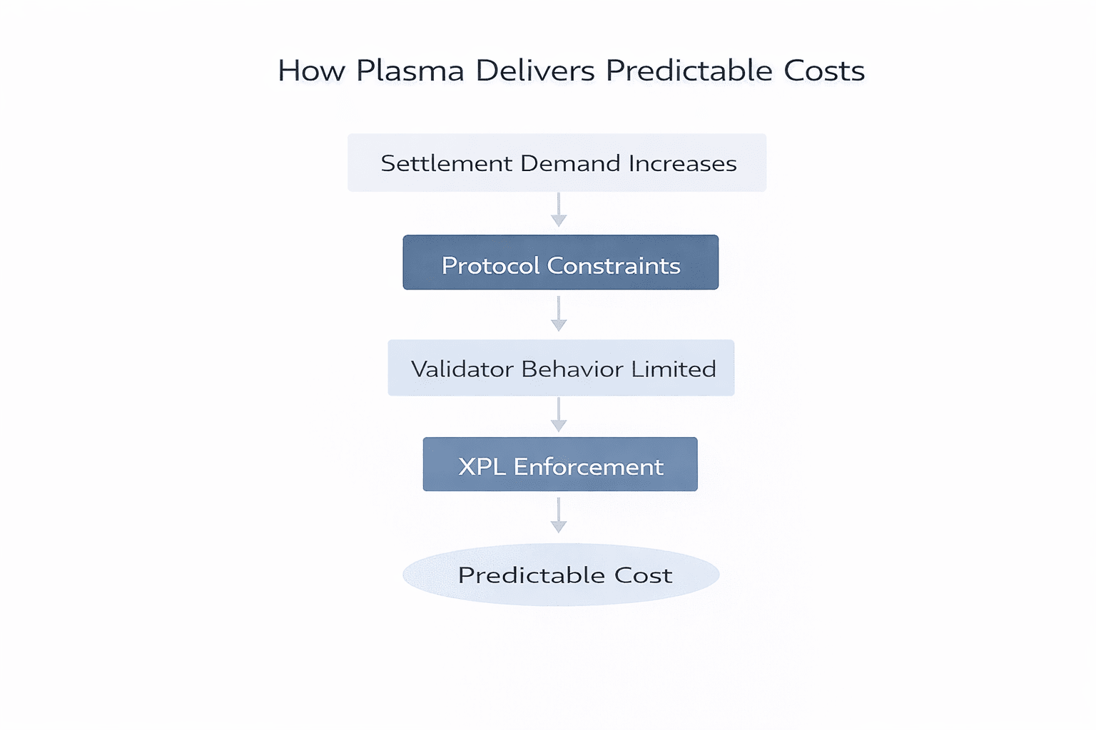 Bằng cách thu hẹp các con đường thực thi và thực thi các quy tắc giải quyết quyết định, Plasma giảm số lượng biến có thể ảnh hưởng đến chi phí. Khi nhu cầu tăng lên, hệ thống không thương lượng với thị trường theo thời gian thực. Nó tuân theo các ràng buộc đã định trước.