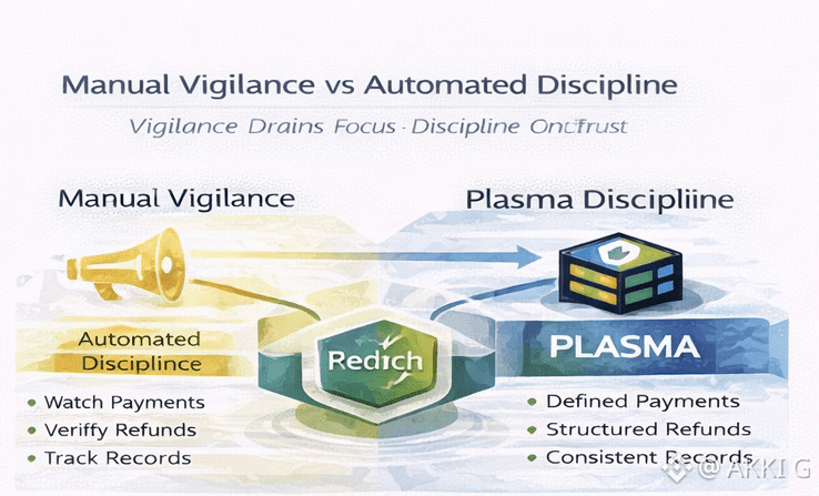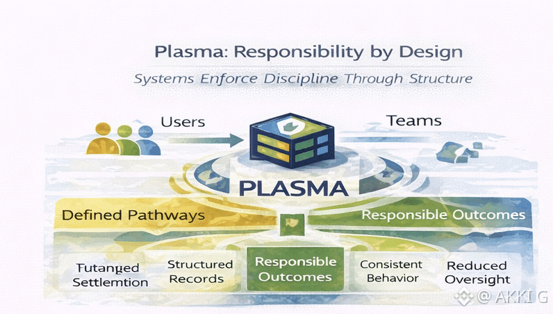 Plasma is built around the idea that financial responsibility should be enforced by structure, not vigilance. Plasma encodes clear execution paths so payments behave predictably regardless of conditions. Settlement windows are defined. Refunds follow disciplined logic. Records remain consistent across the full lifecycle. Responsibility is not optional. It is automatic.