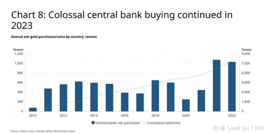 In 2022 and 2023, central banks added more than 1,000 tons of gold in a historic accumulation; a long-term change they desire more protection and diversification, particularly not based on pure dependence on the U.S. dollar reserves.