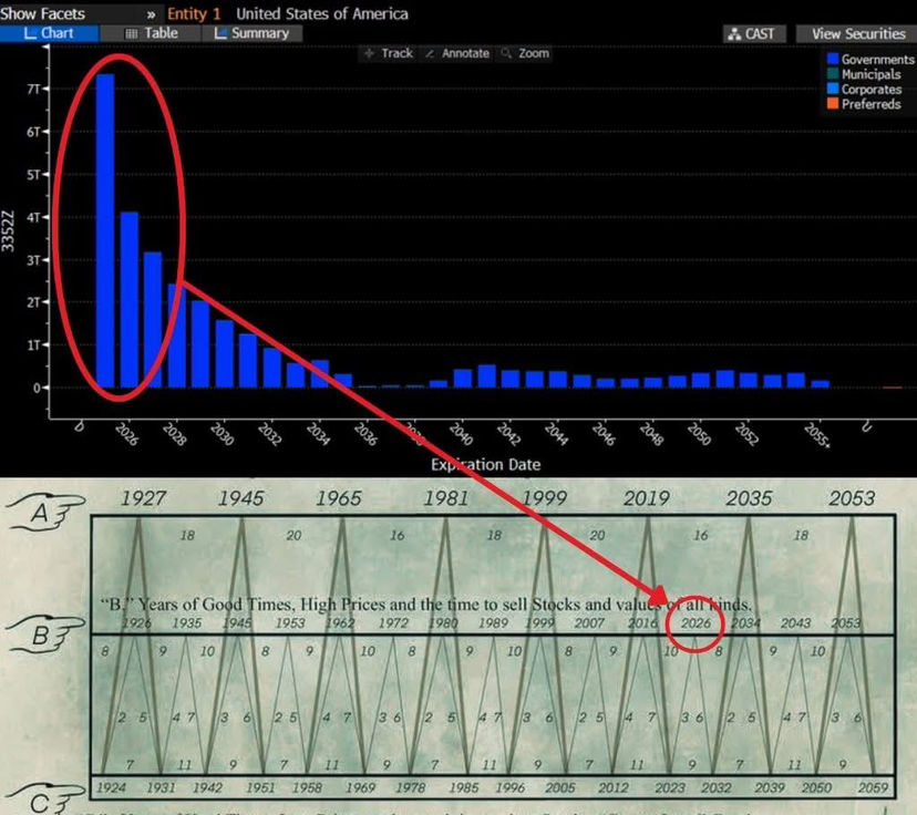 Trong khi thị trường vẫn còn phân vân giữa dip mua và dead cat bounce, một rủi ro macro cỡ hệ thống đang lặng lẽ tiến rất gần: khoảng 9–10 nghìn tỷ USD nợ Kho bạc Mỹ (U.S. Treasury) sẽ đáo hạn và phải rollover/refinance trong năm 2026 (theo ước tính từ Deloitte, Apollo, ZeroHedge macro desk, và dữ liệu Treasury).