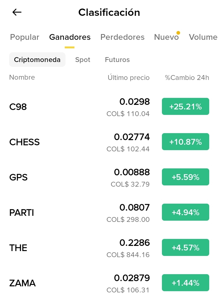 2. Especulación y FOMO local: En exchanges con sección "Popular/Ganadores" (como parece tu captura, posiblemente Binance o una app local colombiana), estos tokens aparecen destacados → atraen más compradores retail que buscan "ganadores del día", creando un ciclo de subidas rápidas (y riesgosas).