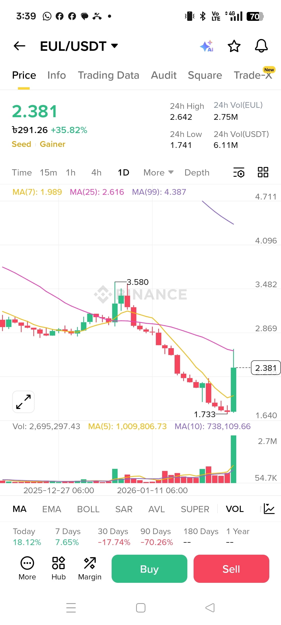 看着現實的目標:第一個有意義的獲利點位於2.60附近,在那裏MA(25)與之前的阻力相交——預計會有一些賣壓。如果動量增強,下一個區域是2.90–3.00,可能作爲一個跳板。對於強勁走勢的真正擴展,3.40–3.60開始發揮作用,與之前深度修正前的舊分配頂部一致。