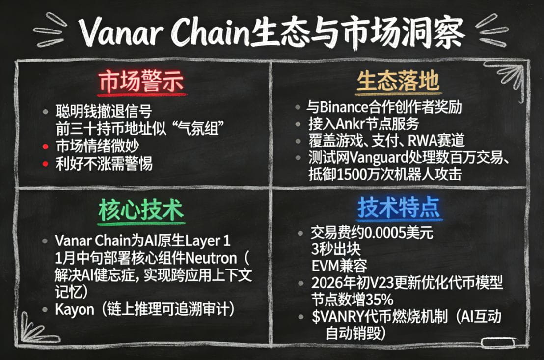 最近和幾個盯盤的朋友聊,大家都覺得市場情緒有點微妙。明明有些項目技術進展挺猛,但盤面就是溫吞水,甚至大地址悄悄在轉移。這讓我想起一句老話:“利好不漲,就要小心。” 不過說歸說,我仔細翻了最近一些低調搞事的項目,發現還真有在踏實建生態的——比如最近我關注的 Vanar Chain。