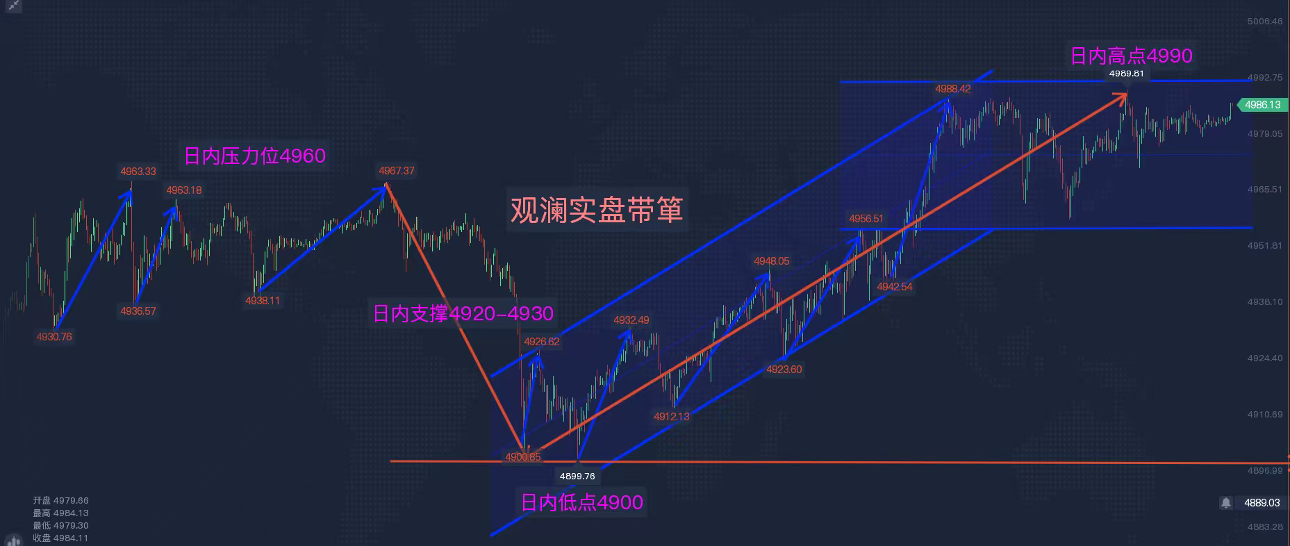 黃金回踩4955附近哆,止損4944一線,若行情走強4970-80附近直接哆,目標5000→5030一線。