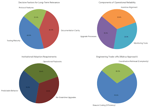 工具成熟度和文檔清晰度對海象的長期相關性可能比任何單一協議特徵更具決定性。機構採用在壓力下表現可預測的系統,這些系統可以在沒有停機驚喜的情況下進行升級,並提供清晰的操作手冊。在這種情況下,缺乏轟動是一種優勢。一個很少引起注意但始終有效的存儲層比一個不斷在公衆視野中演變的存儲層更有價值。