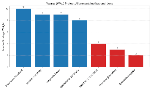 總體而言,海象似乎旨在經受審查而不是關注。其建築保守主義、選擇性隱私模型以及對低調存儲問題的關注,表明該項目旨在追求持久性而非快速採納。在這種情況下,成功不會通過可見性或敘事主導來衡量,而是通過系統在更雄心勃勃的設計被拋棄多年後,仍然繼續運行、升級和通過審計的安靜事實來衡量。