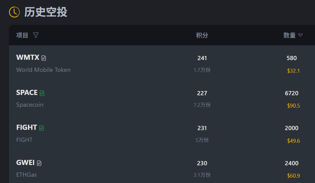 一次的空投收益在20~30u,偶爾會有100~300u的大毛出現。