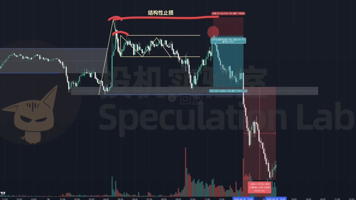 空頭策略規則是:第一,在大週期尋找一個被尊重過且推動價格離開的高點,之後價格也在一個不大的區間有規律地活動,這種 K 線的上方基本就存在着流動性。第二,等價格回落到該流動性高點並突破。第三,在小級別週期觀察確認信號,比如倒錘子線放量、2B 反包等等。