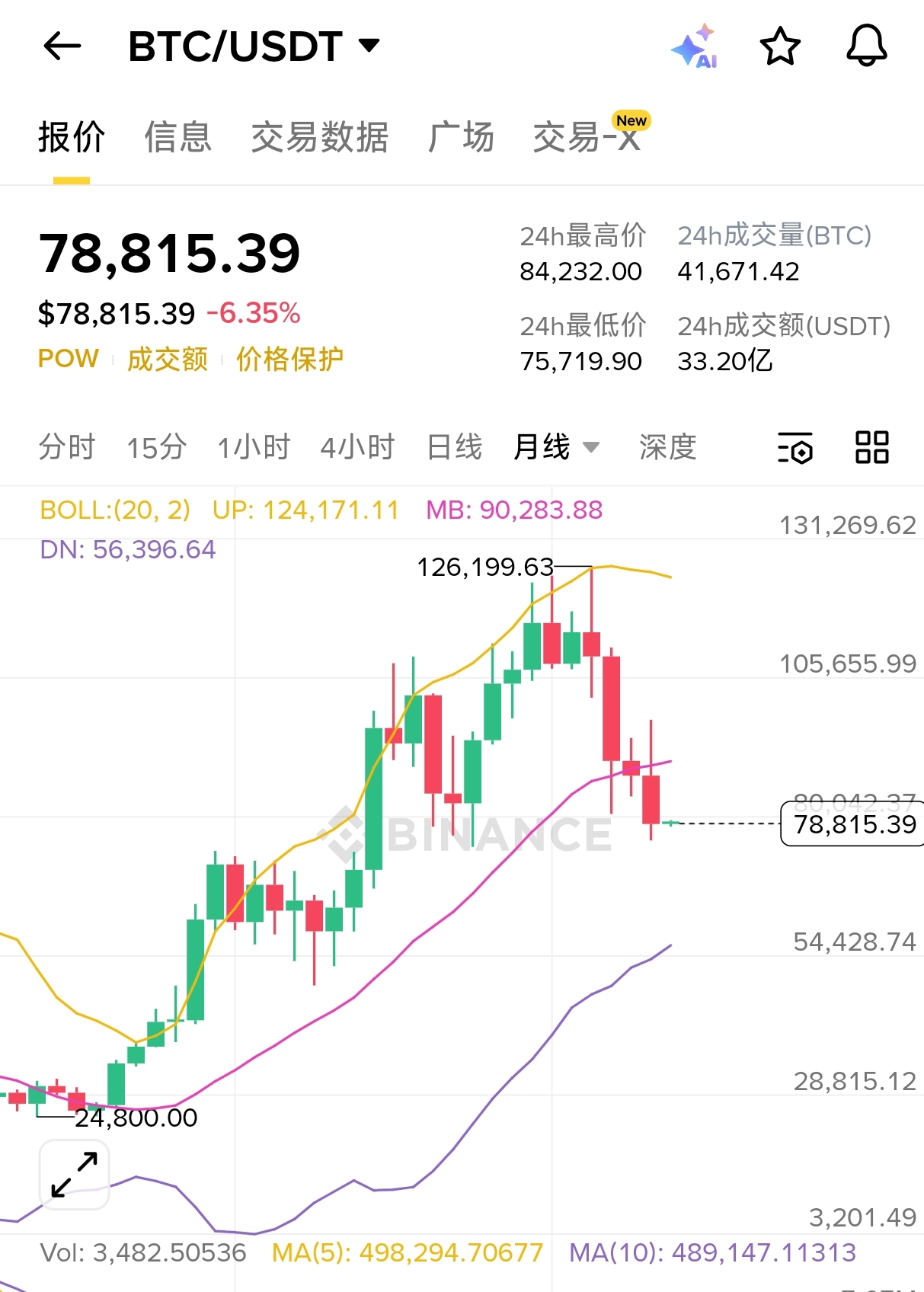 直接看月線布林帶,以下軌爲界限,外部流動性充裕兜底,猜測在5-6萬。