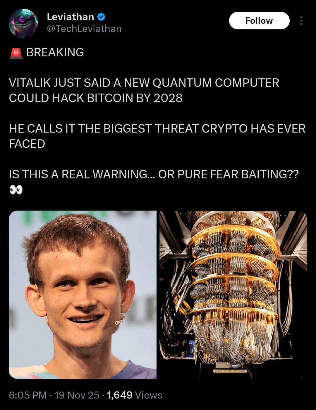 從最近的報告和社交媒體熱議中可以看出,即使是像Vitalik Buterin這樣的領導者也在發出警報。人們擔心一台強大的量子電腦可能會在幾秒鐘內「猜到」你的數位保險庫的密鑰。如果人們相信他們的比特幣可能會被超級電腦盜走,他們會失去信任。在金錢的世界裡,信任就是一切。